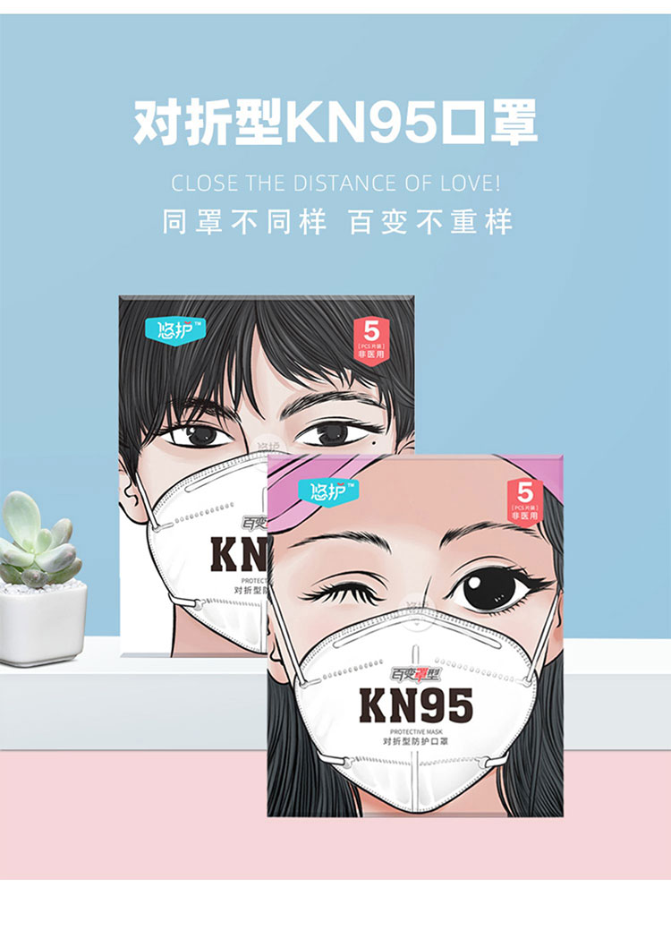 對(duì)折型KN95口罩,四層防護(hù),過(guò)濾率95%以上