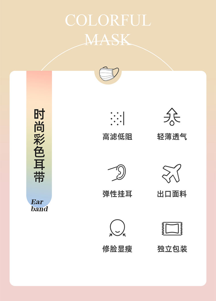 一次性滅菌級專業(yè)防護,高顏值彩色耳帶,時尚潮流