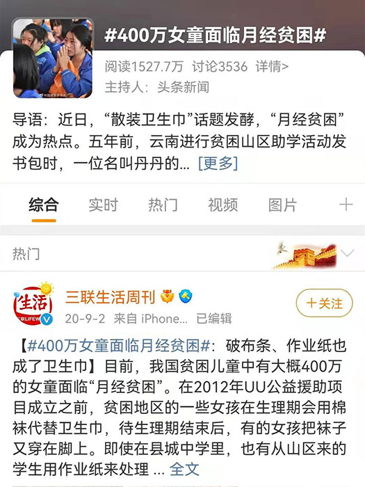 “散裝衛(wèi)生巾”、“月經(jīng)貧困”話題在網(wǎng)絡(luò)上引起一次又一次的熱議。