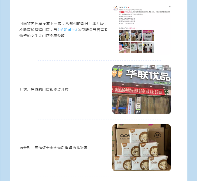針對(duì)此次河南災(zāi)情公益捐贈(zèng)凸凸棉衛(wèi)生巾,感謝張真源官方后援會(huì)捐贈(zèng)、龔俊粉絲團(tuán)捐贈(zèng),希望為受災(zāi)的姐妹獻(xiàn)上一份真誠(chéng)的幫助,我們會(huì)竭盡全力,與大家共渡難關(guān)。
