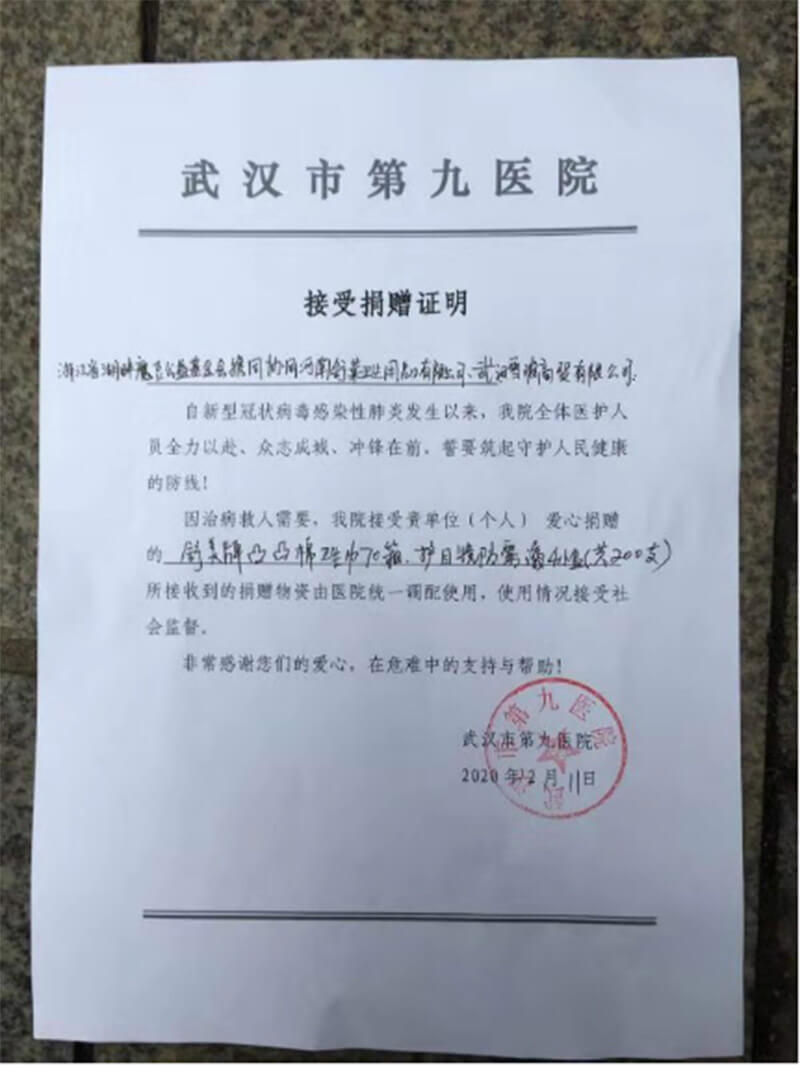 一方有難八方支援,這句話始終銘記在每一位舒萊人的心中。無論是以前的汶川地震,還是如今武漢的新型病毒,舒萊都在第一時間提供力所能及的幫助。疫情來之突然,病毒猖獗,疫情嚴重,前線告急,在這突發(fā)的困難面前,舒萊沒有考慮與遲疑,積極響應共同抗疫。舒萊當即響應政府號召向疫情指揮部捐款十萬元,以作抗疫資金,因為舒萊深知自身所肩負的社會責任。