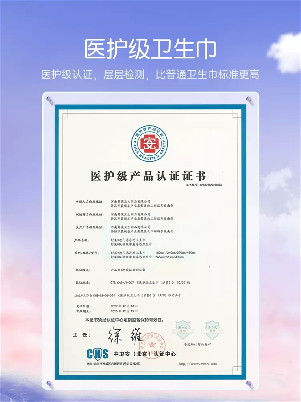 舒萊集團作為女性全階段輕養(yǎng)護理念的開創(chuàng)者,26年來,專研女性全階段健康護理。經(jīng)過多年的努力,舒萊集團已經(jīng)是中國女性衛(wèi)生用品十強企業(yè),也是河南省抗菌婦女衛(wèi)生用品功臣該技術(shù)研究中心,更是抗菌衛(wèi)生巾國家標準及團體標準起草單位。而為了給女性帶來更加舒心的經(jīng)期衛(wèi)生巾使用體驗,讓女性在那幾天也能夠清爽做自己,舒萊集團特推出舒萊透氣懸浮芯系列衛(wèi)生巾,作為舒萊醫(yī)護級消毒級雙認證衛(wèi)生巾,透氣懸浮芯系列的好,大家都能看得見。