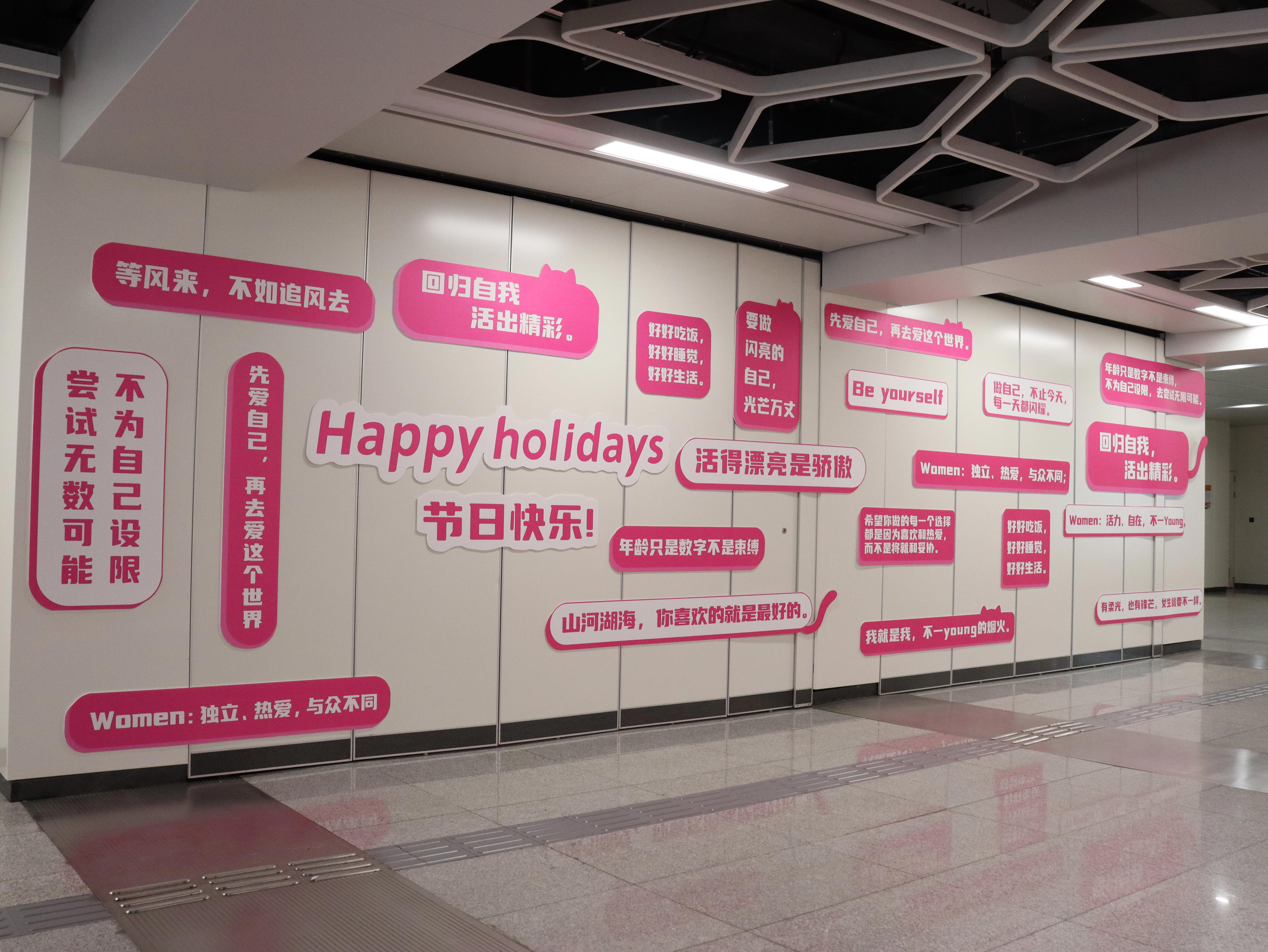 在二七廣場、地鐵站口,凸小喵免費給女性發(fā)放玫瑰花,更是引了不少女性前來領(lǐng)取??扉W舞蹈也使得現(xiàn)場人氣高漲、熱烈空前,還有春日驚喜盲袋備受“寵愛”,消費者爭相參與,更現(xiàn)場開出100元地鐵充值卡。在二七廣場地鐵站的通道墻上,凸凸棉品牌聚焦女性價值,特別制作了女性、力量、正能量風格類的語錄墻,用“不為自己設(shè)限 嘗試無數(shù)可能”、”無論是順流逆流,用自己的節(jié)奏肆意生活”等勵志、暖心的文案引來無數(shù)人前來拍照打卡。
