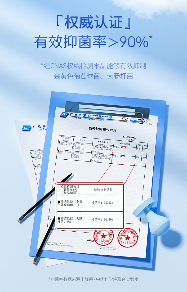專業(yè)抗菌標志認證,1.0D云柔面層